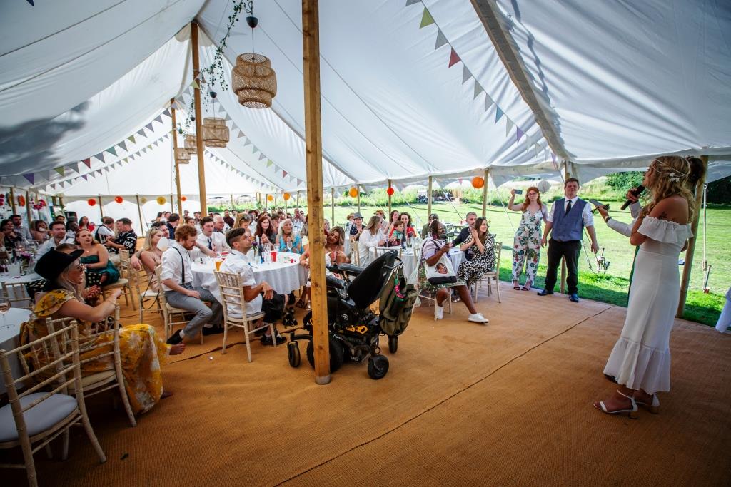Crockstead fields is a laid back festival style events site. We have spent the last 6 years building up loads of elements to the field. And have since run a range of festival weddings, corporate away days, wellness retreats and birthday parties. Our venue is close to the county town of Lewes in East Sussex. Throughout summer the site hire comes with our 9 x 18m Petal Pole Marquee which stays up for the season. This is a structure with many potential uses from seating wedding guests to providing a base for Yoga practises.